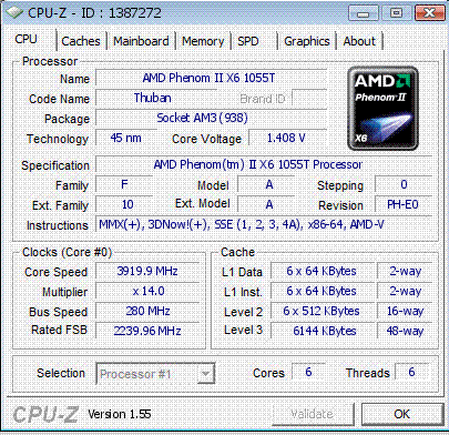Результат разгона AMD Phenom II X6 (Thuban)