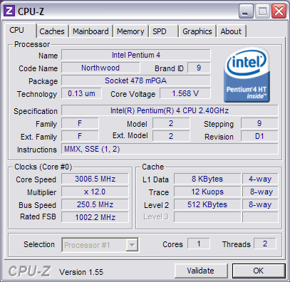 | Процессор (ядро) | Intel Pentium 4 (Northwood) |