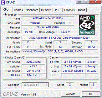 Результат разгона AMD Athlon 64 X2 (Windsor)