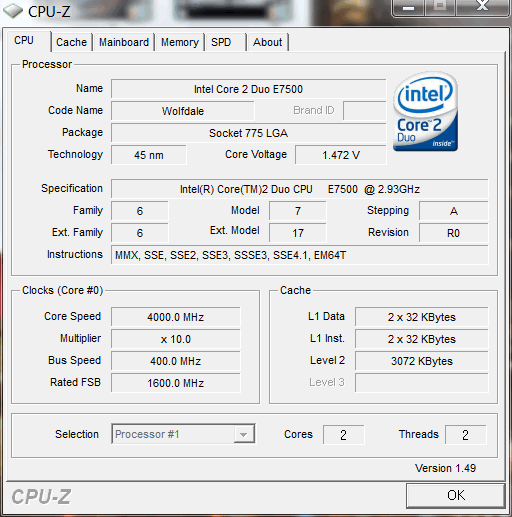Результат разгона Intel Core 2 Duo (Wolfdale)