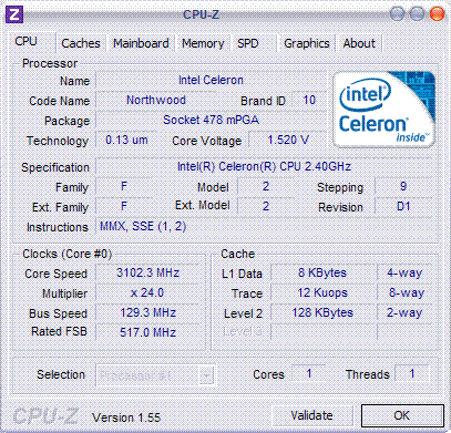 | Процессор (ядро) | Intel Celeron (Northwood-128) |