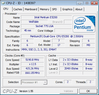 | Разгон, максимально стабильная частота (FSB x Ratio) | 5187 (415 x 12.5) |