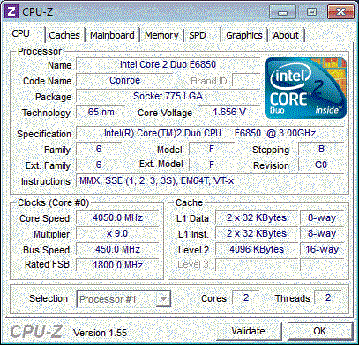 | Разгон, максимально стабильная частота (FSB x Ratio) | 4050 (450 x 9.0) |