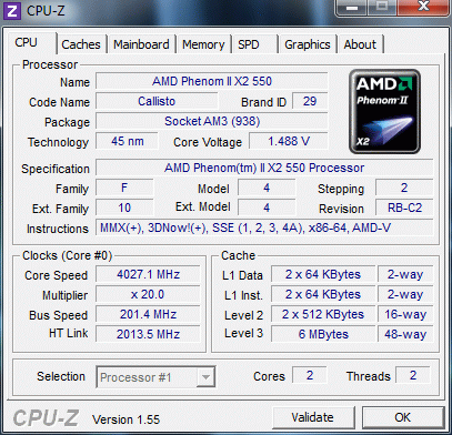 | Процессор (ядро) | AMD Phenom II X2 (Callisto) |