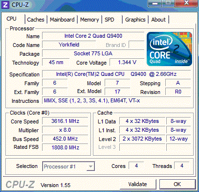 Результат разгона Intel Core 2 Quad (Yorkfield)