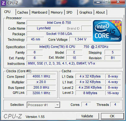| Разгон, максимально стабильная частота (FSB x Ratio) | 4000 (200 x 20.0) |