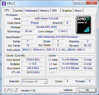 | Процессор (ядро) | AMD Athlon II X4 (Propus) |