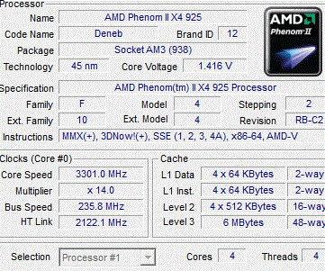 | Процессор (ядро) | AMD Phenom II X4 (Deneb) |