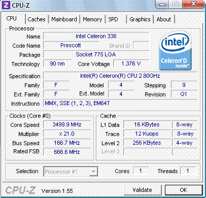| Процессор (ядро) | Intel Celeron D (Prescott-256) |