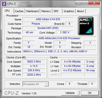| Процессор (ядро) | AMD Athlon II X4 (Propus) |