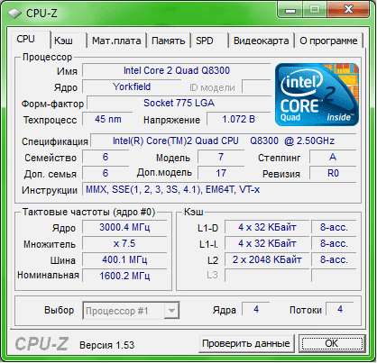 Результат разгона Intel Core 2 Quad (Yorkfield)