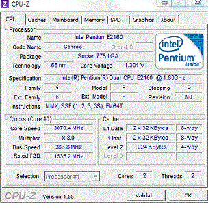 | Процессор (ядро) | Intel Pentium Dual-Core (Conroe-1M) |