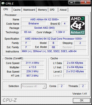 Результат разгона AMD Athlon 64 X2 (Brisbane)