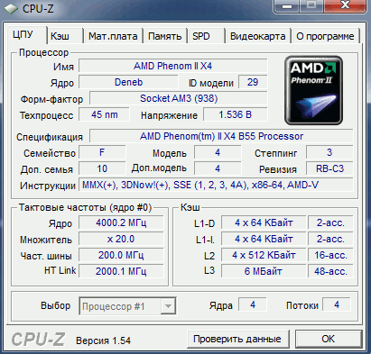 | Процессор (ядро) | AMD Phenom II X4 (Deneb) |