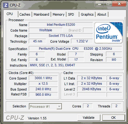 Результат разгона Intel Pentium Dual-Core (Wolfdale-2M)