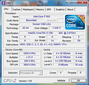 | Разгон, максимально стабильная частота (FSB x Ratio) | 4200 (200 x 21.0) |