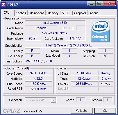 Результат разгона Intel Celeron D (Prescott-256)