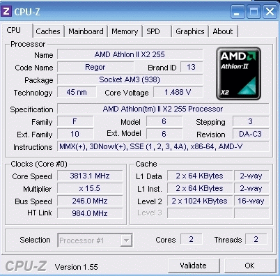 | Процессор (ядро) | AMD Athlon II X2 (Regor) |