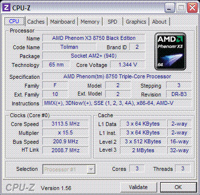 | Процессор (ядро) | AMD Phenom X3 (Toliman) |