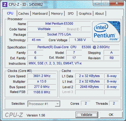 Результат разгона Intel Pentium Dual-Core (Wolfdale-2M)