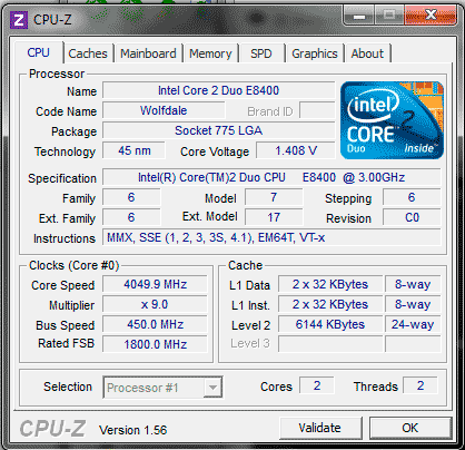 Результат разгона Intel Core 2 Duo (Wolfdale)