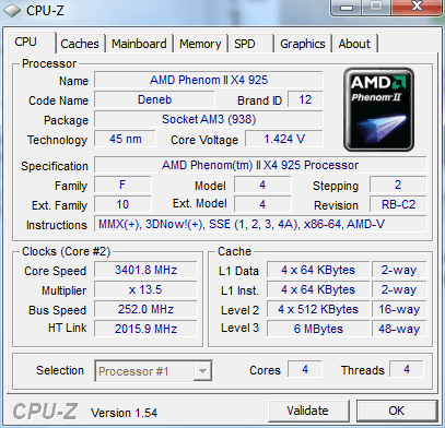 | Процессор (ядро) | AMD Phenom II X4 (Deneb) |