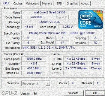 Результат разгона Intel Core 2 Quad (Yorkfield)
