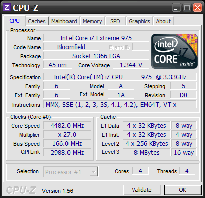 | Разгон, максимально стабильная частота (FSB x Ratio) | 4482 (166 x 27.0) |