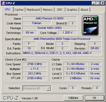 | Процессор (ядро) | AMD Phenom X3 (Toliman) |