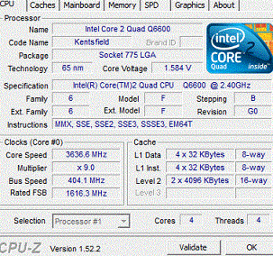 Результат разгона Intel Core 2 Quad (Kentsfield)