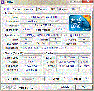 Результат разгона Intel Core 2 Duo (Wolfdale)