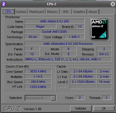 | Процессор (ядро) | AMD Athlon II X2 (Regor) |
