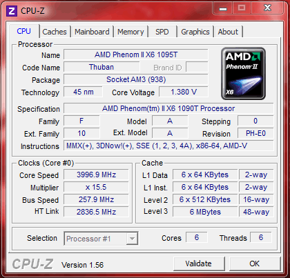 | Процессор (ядро) | AMD Phenom II X6 (Thuban) |