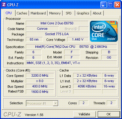 Результат разгона Intel Core 2 Duo (Conroe)