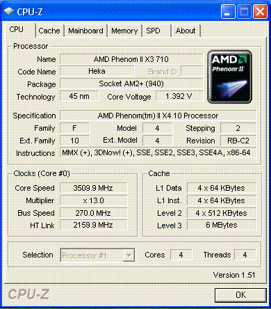 | Процессор (ядро) | AMD Phenom II X3 (Heka) |
