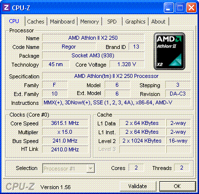 | Процессор (ядро) | AMD Athlon II X2 (Regor) |