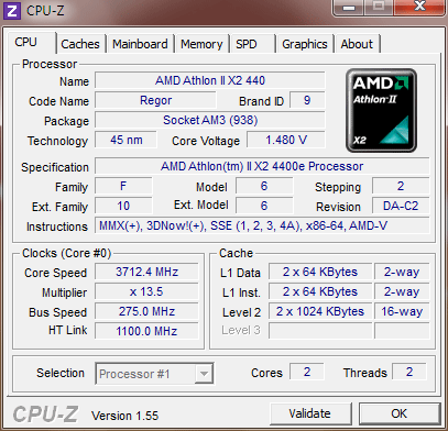 | Процессор (ядро) | AMD Athlon II X2 (Regor) |