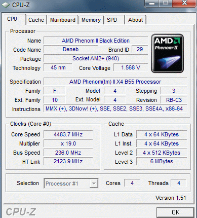 Результат разгона AMD Phenom II X4 (Deneb)