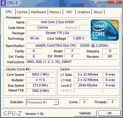 Результат разгона Intel Core 2 Duo (Conroe-2M)