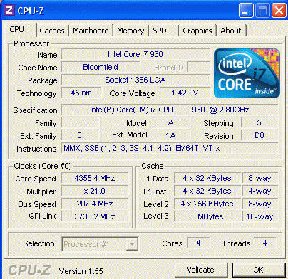 Результат разгона Intel Core i7 (Bloomfield)