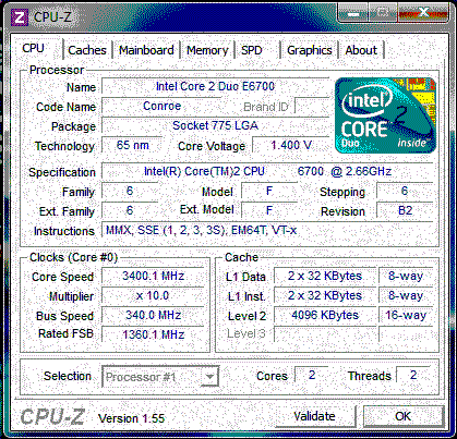 Результат разгона Intel Core 2 Duo (Conroe)
