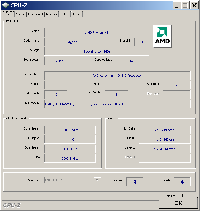 | Процессор (ядро) | AMD Athlon II X4 (Propus) |