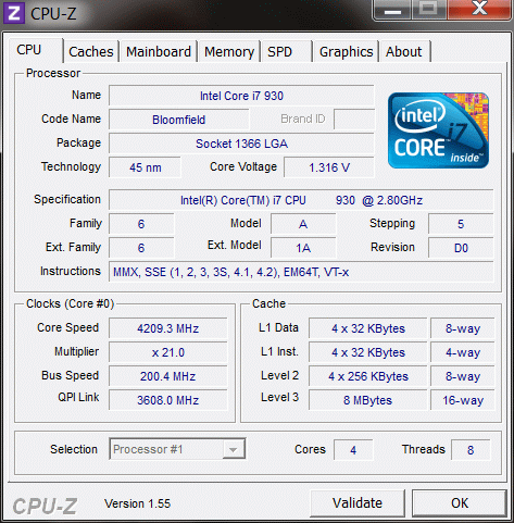 Результат разгона Intel Core i7 (Bloomfield)