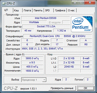 Результат разгона Intel Pentium Dual-Core (Wolfdale-2M)