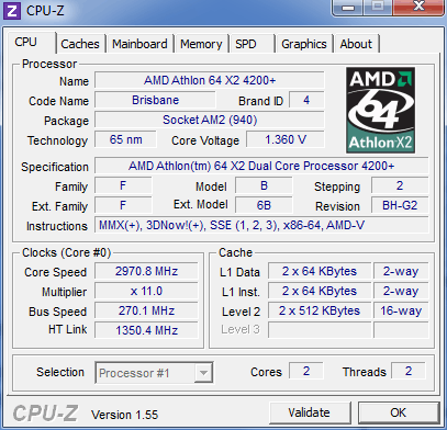 Результат разгона AMD Athlon X2 (Brisbane)