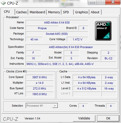 | Процессор (ядро) | AMD Athlon II X4 (Propus) |