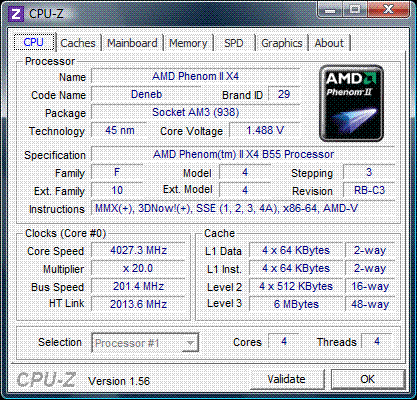 | Процессор (ядро) | AMD Phenom II X4 (Deneb) |