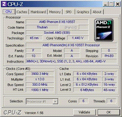 Результат разгона AMD Phenom II X6 (Thuban)