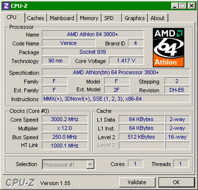 | Процессор (ядро) | AMD Athlon 64 (Venice) |