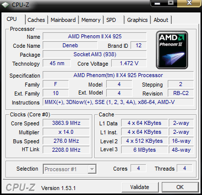 | Процессор (ядро) | AMD Phenom II X4 (Deneb) |